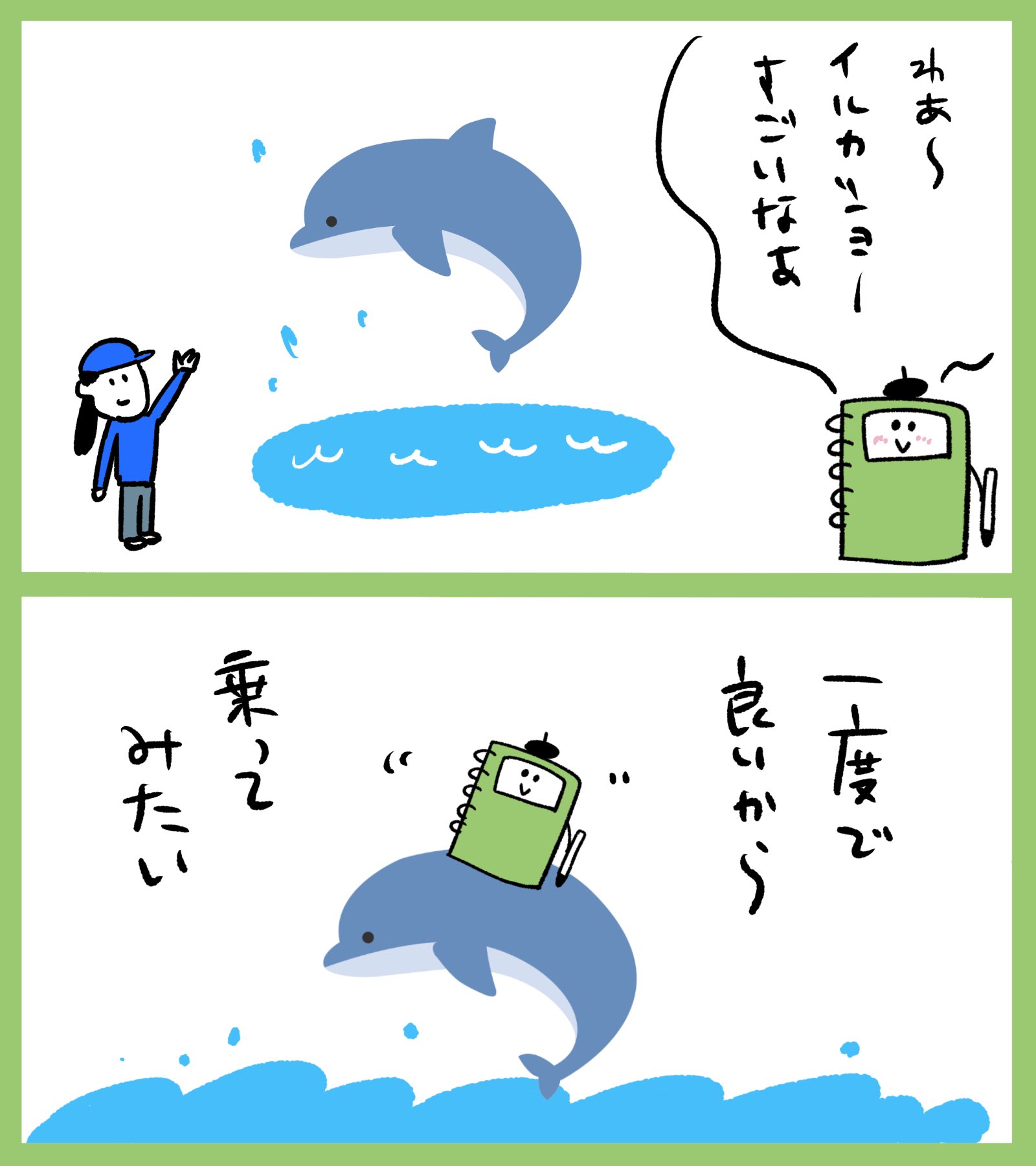 Onwaイラスト 今日の2コマ漫画 ジャンプするイルカ フリー素材 イルカショー